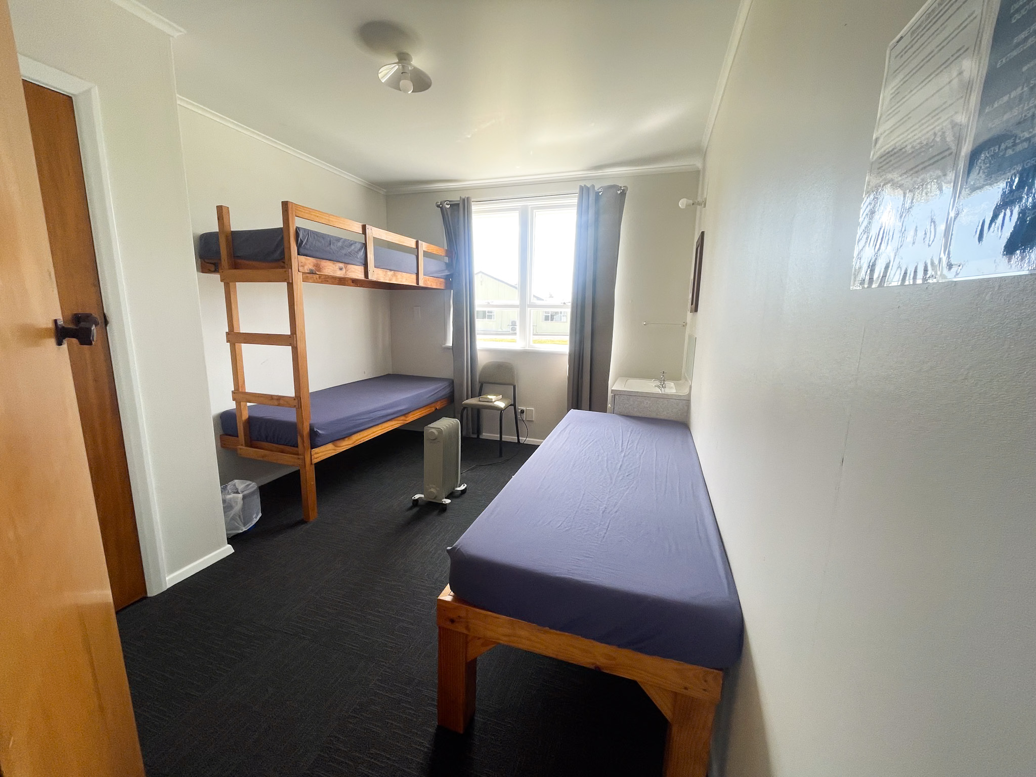 There are 7 bedrooms where each bedroom sleeps up to three people in two beds and a top bunk.